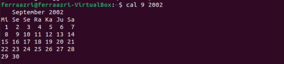4. Bagaimana anda dapat melihat manual dari perintah cal ?